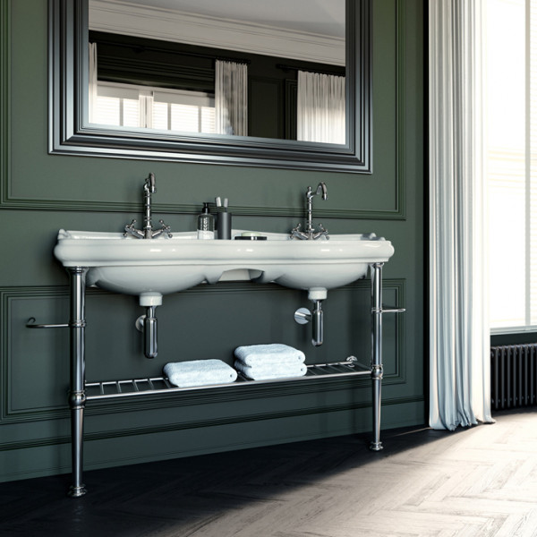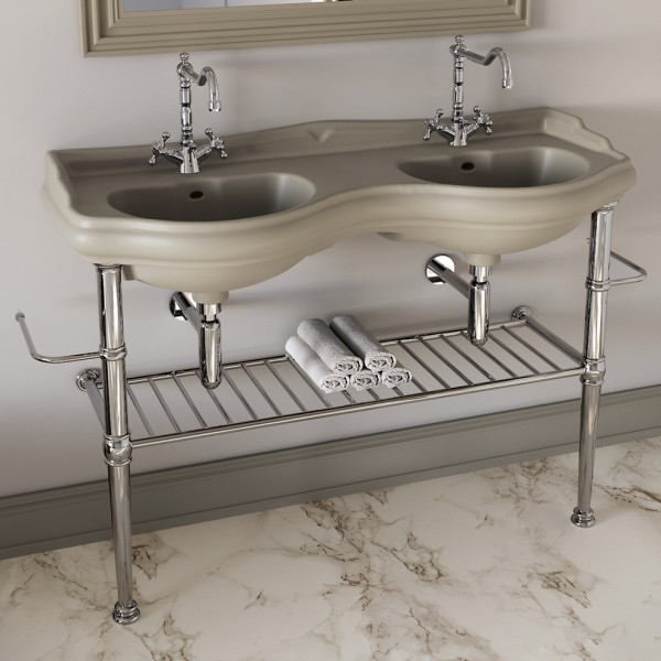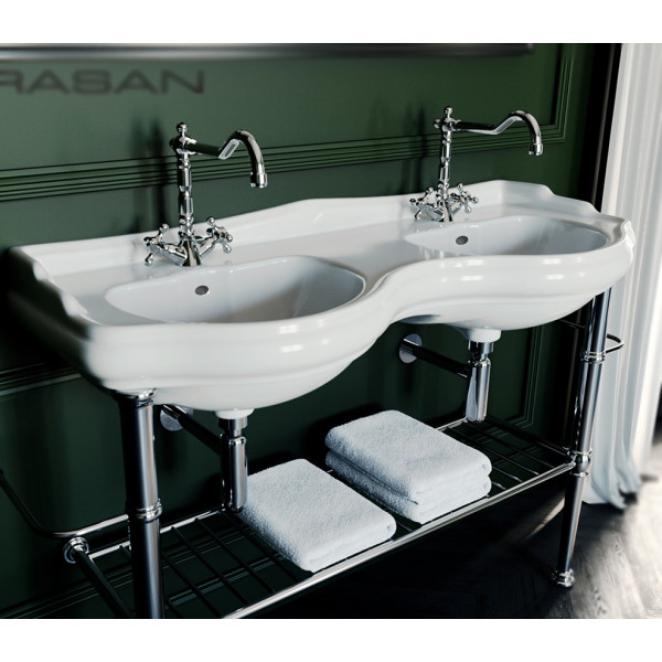 Retro Kerasan раковина двойная подвесная или с пьедесталом 1200 мм, белая или черная, с 1 или 3 отверстиями под смеситель.