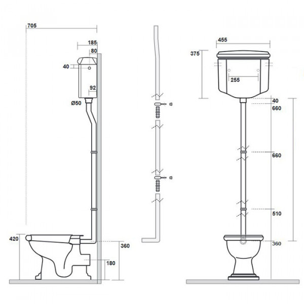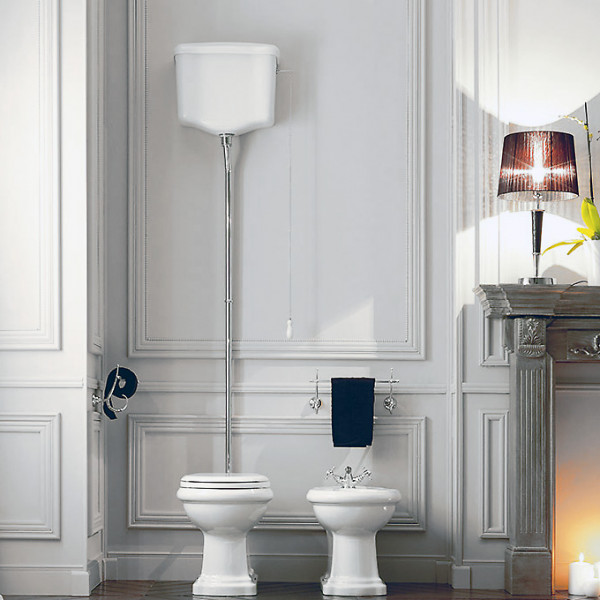 Retro Kerasan унитаз с высоким бачком на трубе, слив универсальный.