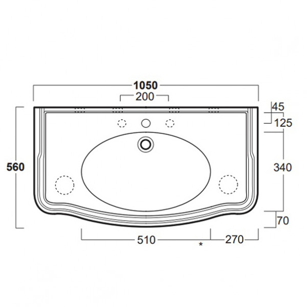 Arcade Simas раковина консольная 90х56 или 105х56 см, классика, белая или черная, керамика, с 1/3 отверстиями под смеситель.