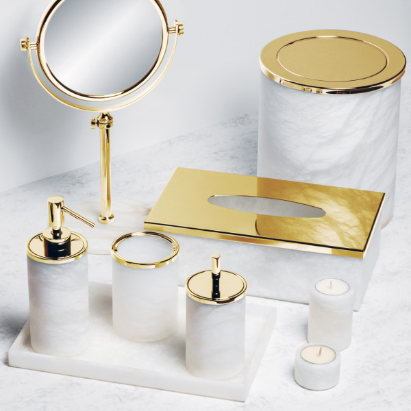 Аксессуары для ванной из белого матового натурального камня Windisch Alabaster с фурнитурой хром, матовое или глянцевое золото:
