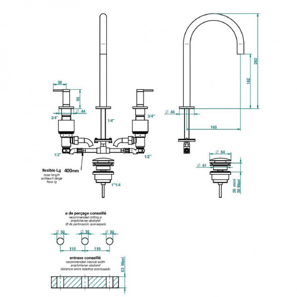 Anoa Black Horn THG премиум смеситель для раковины на 3 отверстия, золото Soft Gold В НАЛИЧИИ