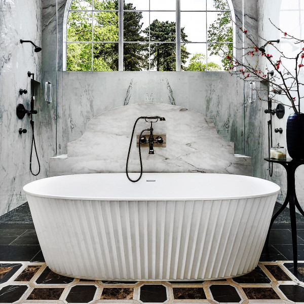 Bowie MTI овальная скульптурная ванна из искусственного камня отдельностоящая 176х90 см, аэромассаж опционально.