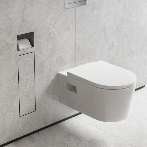 Создайте лаконичный декора ванной комнаты (туалета) с помощью встраиваемых в стену модулей ершика, мусорной корзины и ящичка (полки).