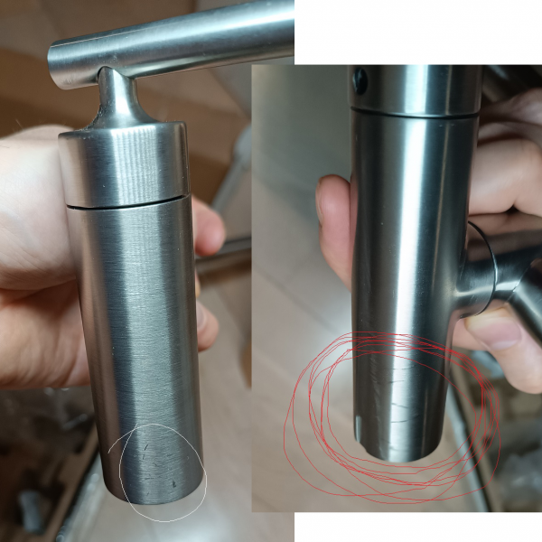 Обратите внимание: кран с уценкой из-за незначительных царапин на поверхности (фото по запросу). Ввиду того что финишная отделка - матовая сталь шлиф (нержавейка), на поверхности крана царапины не очень сильно заметны.