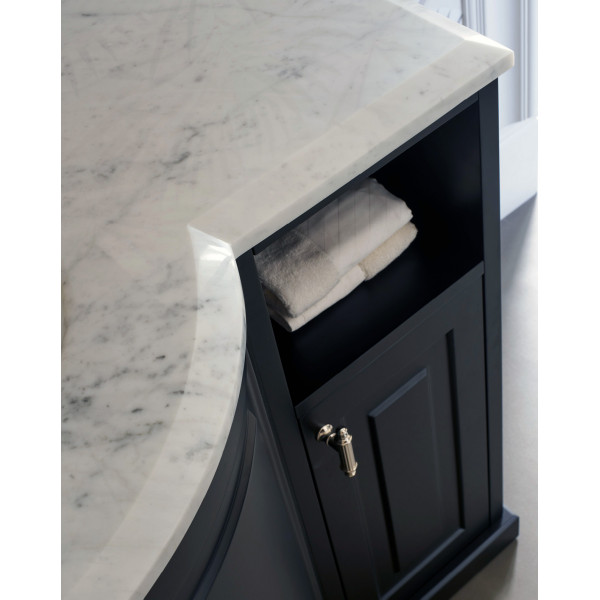 Kent Devon Devon мебель для ванной италия классика с дизайном, напоминающим о самых аутентичных британских традициях, представляет собой новую икону классического стиля, сочетающую в себе гладкие лакированные дверцы, универсальные открытые полки - ниши, изысканную мраморную столешницу.