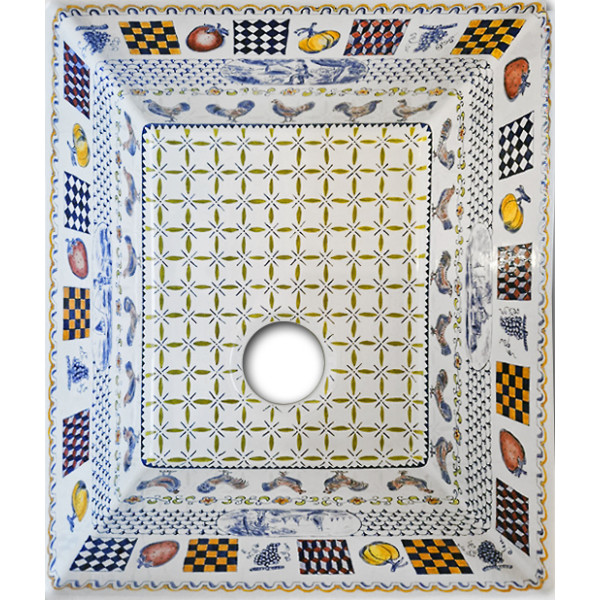Кухонная мойка с рисунком в стиле прованс, с мотивами: рыбалка, урожай и садоводство. Стиль ванной прованс легкий для воплощения и простота связана с «наивным» элементами декора.