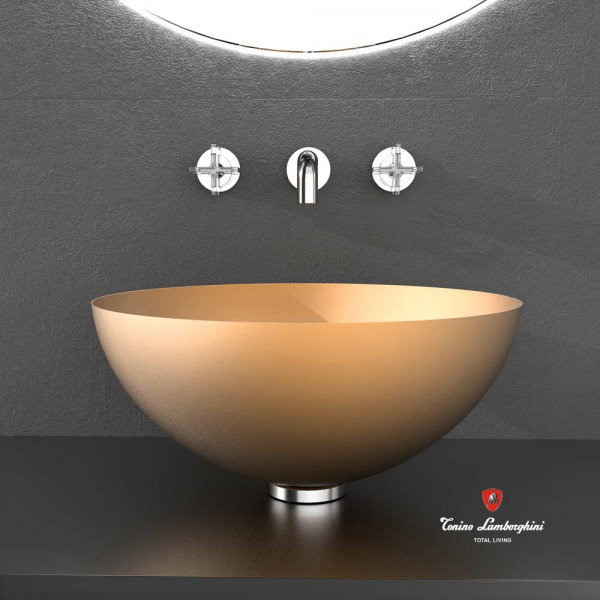 Tonino Lamborghini Glass Design круглая дизайнерская раковина, которая изготовлена из окрашенного алюминия.