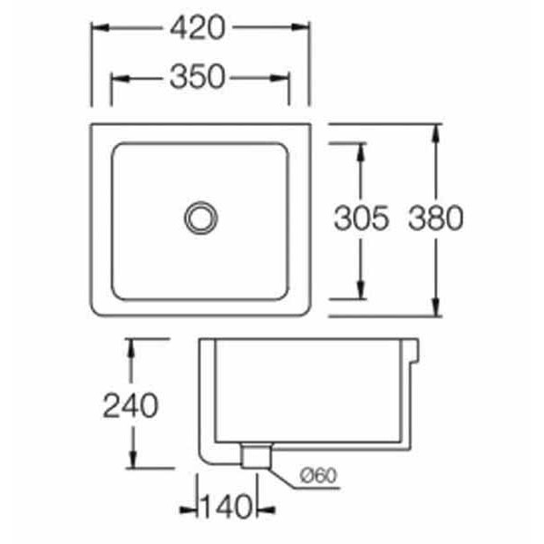 Раковина хозяйственная керамическая HATRIA SPECIALS YN0201, размер 38х42 см, цвет белый.