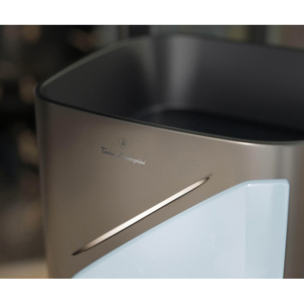 Вдохновленная наследием Тонино Ламборджини, модель Iconico Glass Design отличается плавными обводами формы. Изготовленная из материала VetroFreddo®, она имеет двухцветную структуру с внутренней черной сердцевиной и цветными внешними деталями.