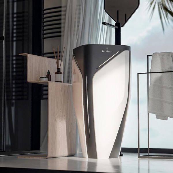 Система освещения подчеркивает футуристический и технологичный дизайн этой раковины, придавая ей решительный и эмоциональный вид. Цветная внешняя оболочка, доступная в оранжевом, кислотно-зеленом, светло-голубом, белом и черном цветах, обеспечивает различные возможности настройки на любой вкус.