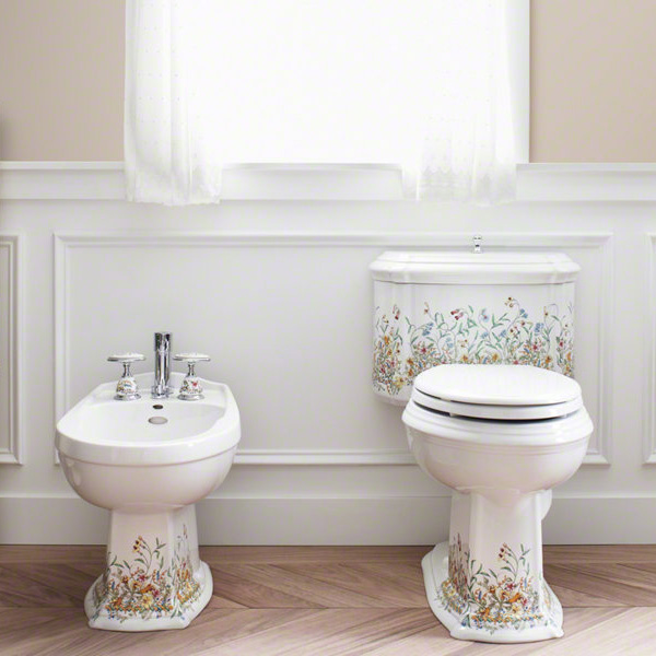 English Trellis Kohler унитаз и биде своей формой напоминают мягкие края и скульптурные линии французской провинциальной мебели.
