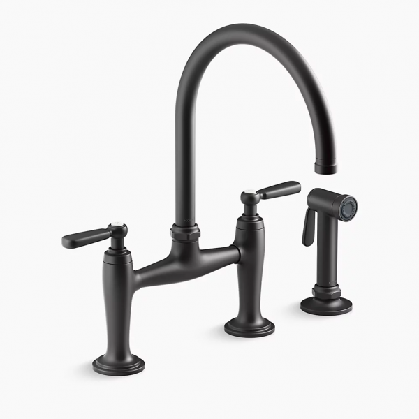 Edalyn by Studio McGee классический мостовой смеситель для кухни с боковым душем, хром, никель, матовое золото, черный, K-28356 Kohler