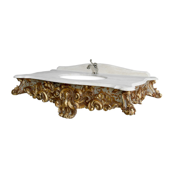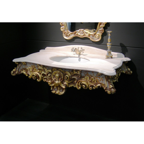 8576/DP Linea Rinascimento Консоль из массивного дерева в отделке Policromo (полихром) и Oro (золото), со столешницей из Травертина Bianco Cristallino