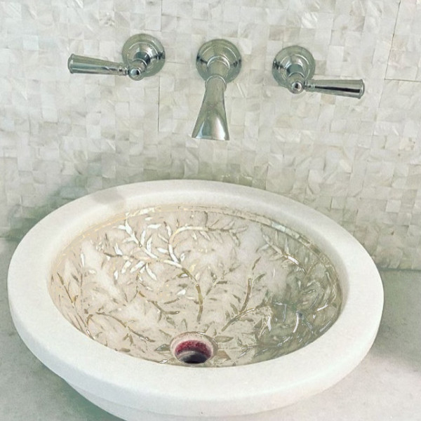 Linkasink круглая раковина из мрамора инкрустированная перламутром, встраиваемая снизу или сверху столешницы