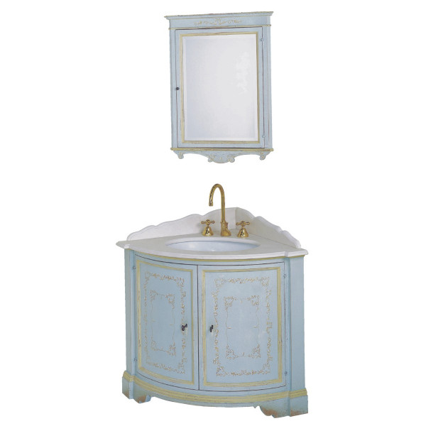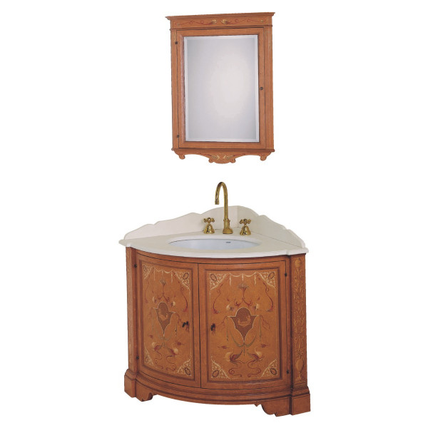 Угловая мебель из массива в классическом стиле Bianchini Capponi: Столешница из каррарского мрамора, Раковина керамическая, цвет белый. Зеркало и шкаф - массив.
