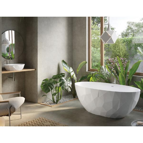 Ванна геометрической формы из коллекции Acquabella - это нечто необычное. Ванны из минерального композита не только обеспечивают комфортное купание, но и отличаются эксцентричным дизайном, который привлекает внимание в пространстве ванной комнаты/