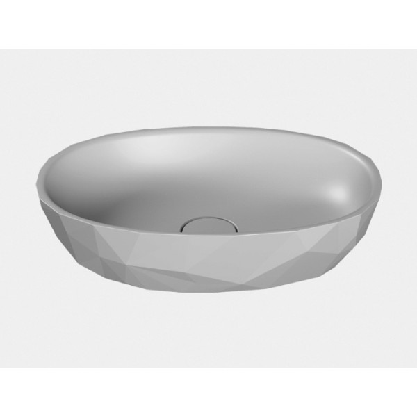 Изящная овальная форма с плоским ободком, но с неожиданной трехмерной абстрактной внешней поверхностью, напоминающей искусство оригами.
