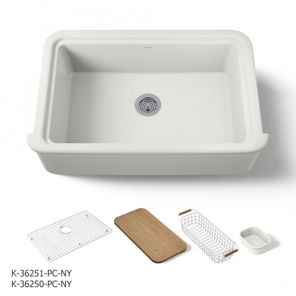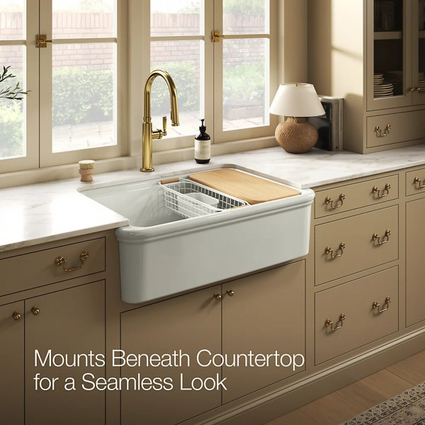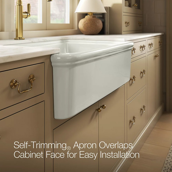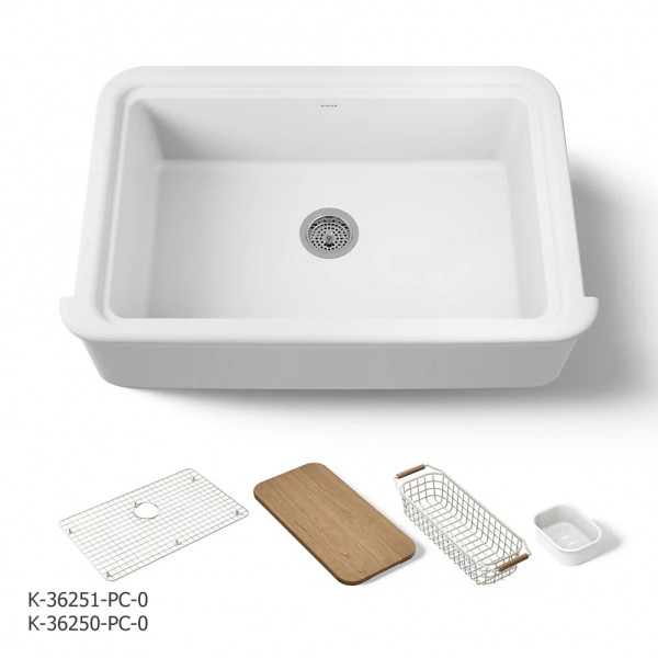Audrine Kohler Farmhouse "фермерская" полувстраиваемая керамическая кухонная мойка, доступна в белом или Dune цвете, варианты размеров: