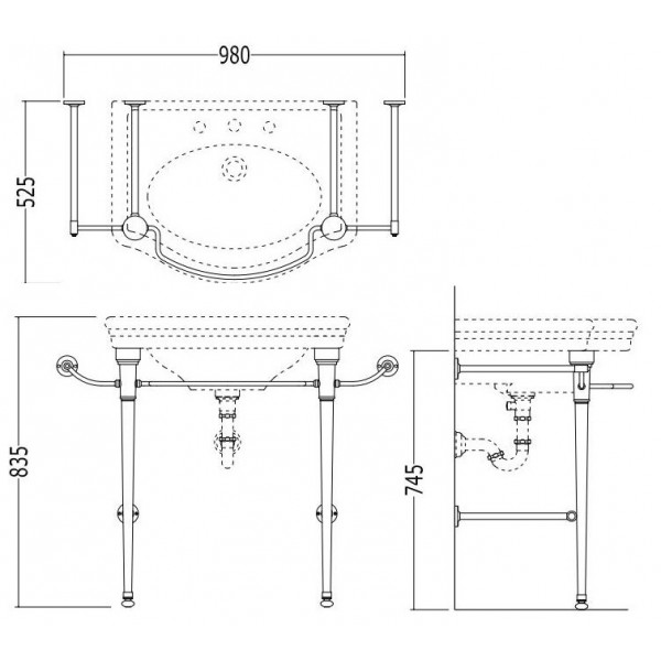 New Etoile Devon Devon раковина 70х53 (1-3 отверстия) на металлической консоли (хром, никель, золото)