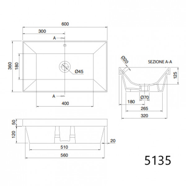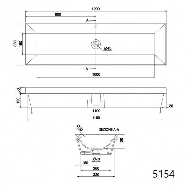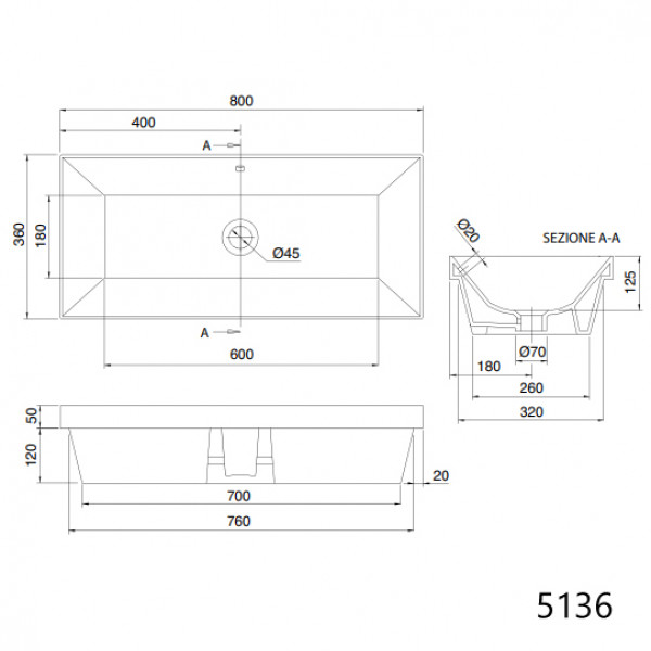 Scarabeo Teorema2 врезная снизу раковина прямоугольная 60х36 80х36 100х36 120х36 см без отверстий для смесителя