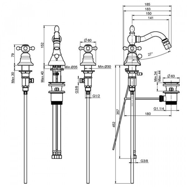 Elizabeth FIMA Carlo Frattini смеситель для биде на три отверстия, бронза