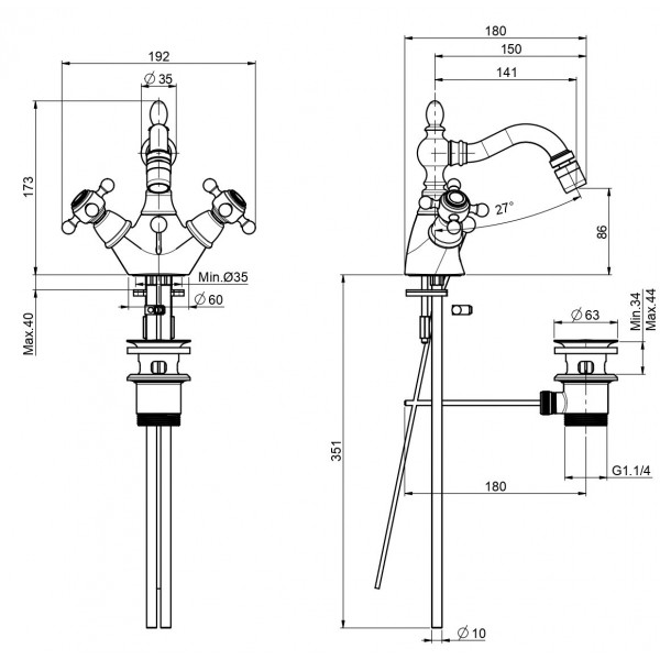 Elizabeth Fima Carlo Frattini смеситель для биде на 1 отв классика, золото, бронза
