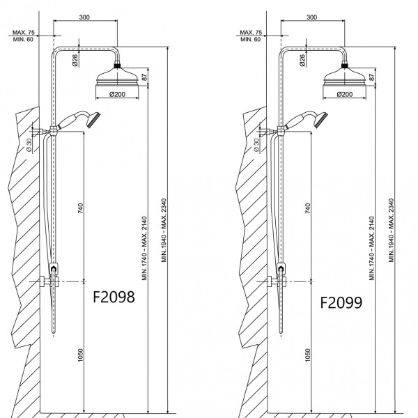 FIMA Carlo Frattini душевая стойка для (душевая система) ретро для монтажа поверх стены, хром, золото, медь, бронза